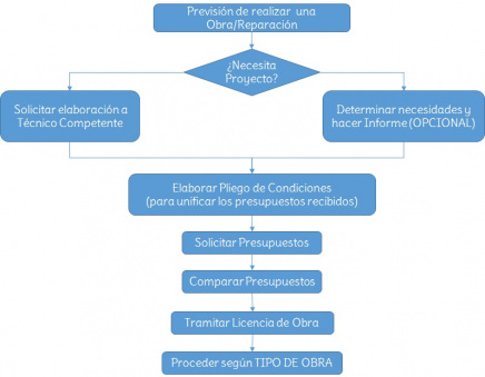 En los siguientes diagramas, se muestran la secuencia de los pasos que debería seguirse a la hora de realizar alguna obra, para lo cual SALPEVI, en estrecha relación con los representantes/gestores del Promotor, asesoría, gestionaría y ejecutaría, según las necesidades de nuestros clientes.